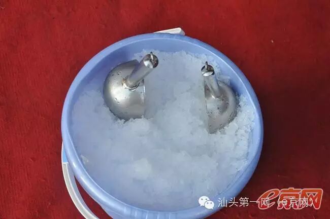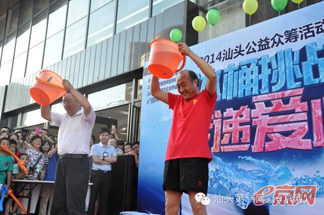 汕大医学院附属二医院副院长马廉和汕大商学院院长吕源 挑战冰桶