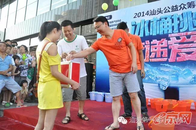 今天下午,“冰桶挑战,传递爱心”2014汕头公益众筹活动在星湖商业城正式启动。本次活动由汕头市电子商务产业协会、信息服务和软件行业协会、高新技术企业协会、e京网联合发起,旨在通过爱心接力的方式实现公益众筹,本次活动筹集的善款将定向捐献给汕头大学医学院附属二医院儿科白血病基金。