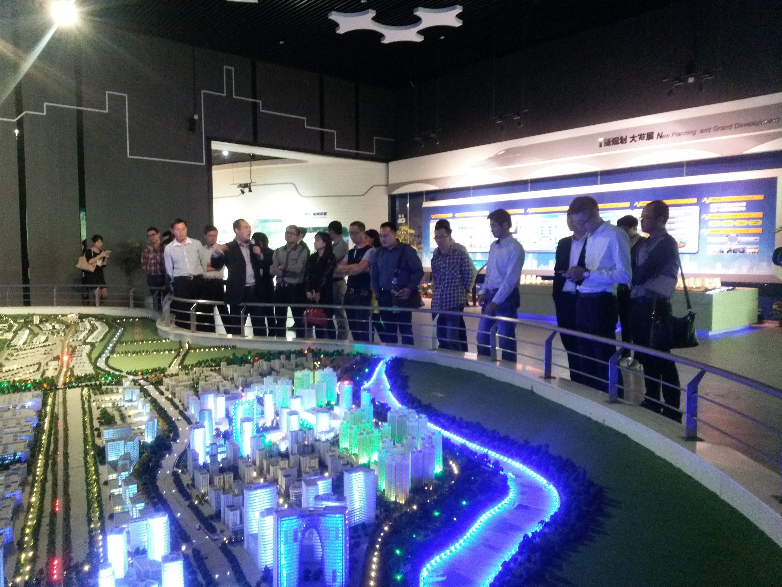 粤东物流总部新城项目是中国五矿集团与汕头市人民政府战略合作的区域开发项目,为海湾新区产城融合发展的重要示范区。与会者首先参观了五矿的项目展厅,了解新城布局与电子商务、金融服务、物理服务为主的产业链布局。