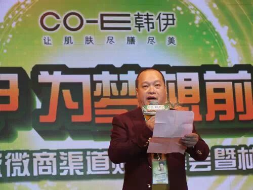 会议在激情昂扬的开场鼓中拉开帷幕,雅威集团董事长李耀品先生代表韩伊品牌向到场的各位来宾予以诚挚的问候和衷心的感谢并慷慨致辞,讲述韩伊品牌10年的深厚沉淀和“膳养美肌”的护肤理念,以及韩伊2015年的微商财富梦想。