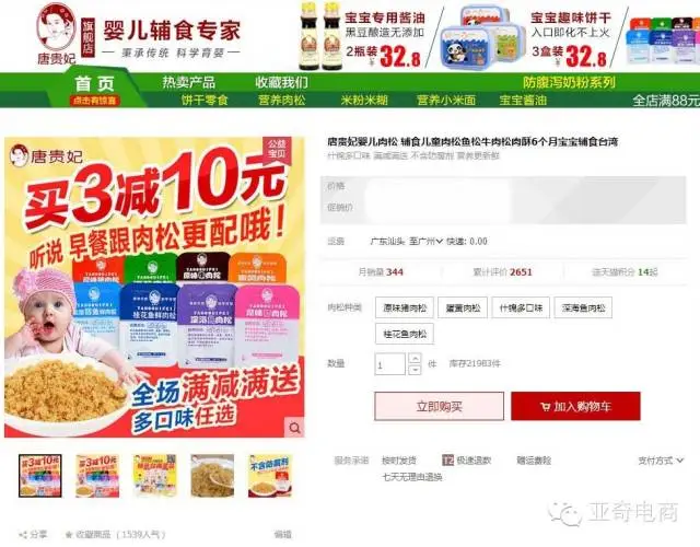 下述案例是属于母婴奶粉营养类目下的小叶类目:婴儿辅食,该品牌主打产品,所在的小类目占整个母婴营养品的市场份额不到2%,其操作难度可想而知。亚奇公司接手该天猫店时,月销从几百到2千不等,等同说我们接了一个“死店”,整店几乎处于无流量、无订单、无转化的状况。加之该没有足够的知名度,网上销售一直停滞不前。