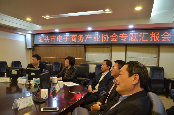应市商务局要求,3月27日下午,汕头市电子商务产业协会召开专题汇报会在全球通大厦举行。市商务局局长刘文华、副局长郑文鹰,协会会长朱怀奇、名誉会长郭汉鹏,柏亚园区、天亿马、潮宏基、智美科技、大树玩具、新龙新、伽懋毛衫、派一电商、汕头苏宁等副会长领导、理事代表20多人出席了本次汇报会
