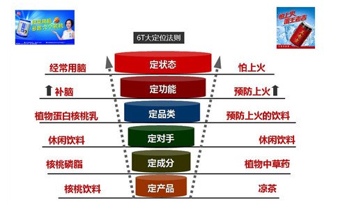 从基础到上层,定产品、定成分、定对手、定品类、定功能、定状态。最核心的定位即顶层“定状态”,为消费者提供一个购买产品的理由或者情景。而这个理由或者情景,又一定是以产品为根基,以成分为支撑,有可能发源于对手层级的定位,也有可能是源自于品类层级的概念创新,最重要的而且大部分情况下都还是从功能层级出发,来找到符合市场需要的状态定位诉求!