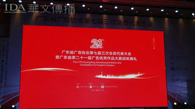 广东省第21届广告优秀作品汇展暨自由创作大赛颁奖典礼于12月17日晚在河源隆重举行,全省广告人欢聚一堂庆贺自己的节日。汕头广告协会秘书处、天运广告、英信广告、汉威泰合、林毅广告及IDA华文传播等代表参加了颁奖典礼。作为广东省最高级别的广告盛典,本次大赛共有来自省内外58家广告企业的882名广告人参加角逐,参赛作品达354件(套),大赛结果在当晚的颁奖典礼上揭晓。
