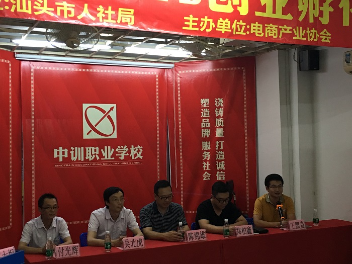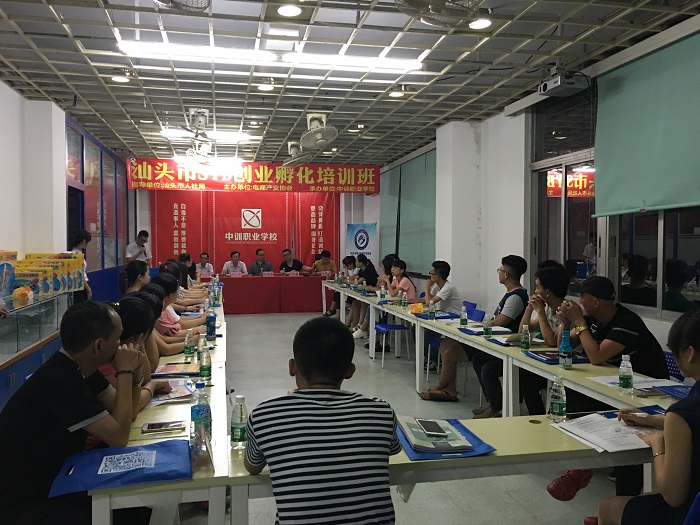 6月22日晚8点,由汕头市人力资源和社会保障局指导开办,汕头市电子商务产业协会和中训职业技能培训学校联合举办的“SYB创业孵化培训班”在中训职业学校顺利进行开班仪式。出席本次开班仪式的领导有汕头市人社局培训科科长陈绵雄,汕头市电子商务产业协会副秘书长王照良、汕头市派一电子商务有限公司董事长郑柏鑫,中训职业学校校长吴北虎。