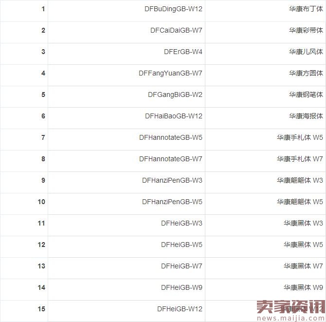 为方便阿里巴巴集团旗下平台商家对字体使用的需求,阿里巴巴集团与华康字体公司达成合作,如下列举的45款华康字体,可供商家在阿里巴巴集团旗下平台上放心、免费使用,授权期限:永久。
