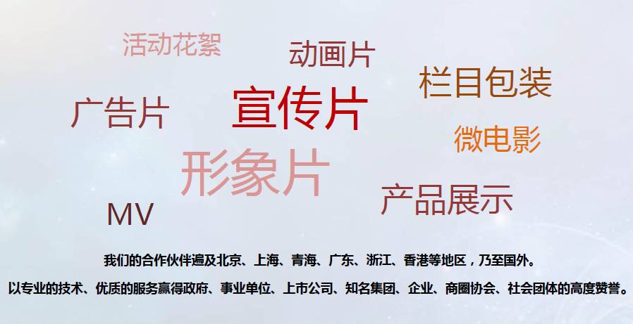 视频整合:包括专题片、宣传片、品牌形象片、广告片、公益片、